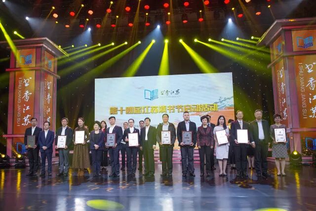 省委宣传部常务副部长焦建俊、省广电总台台长卜宇、省广电有线信息网络股份有限公司董事长顾汉德、省新闻出版广电局副局长、省全民阅读办副主任尹晓平,凤凰传媒股份有限公司总经理、江苏新华发行集团董事长孙真福为第二届江苏省全民阅读“五十佳”获奖代表颁发奖牌。