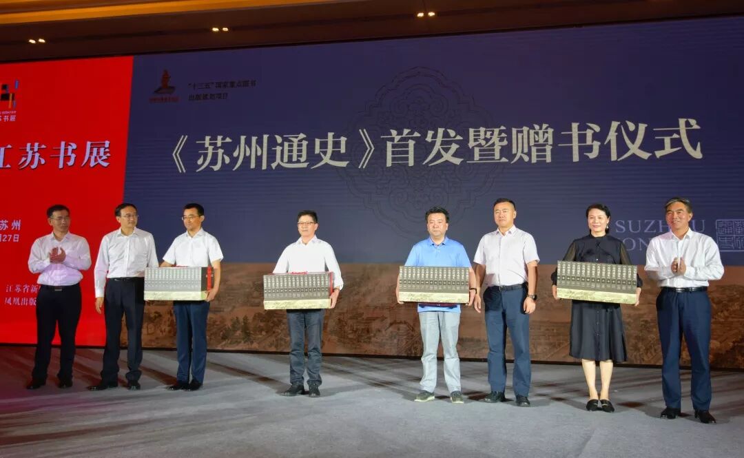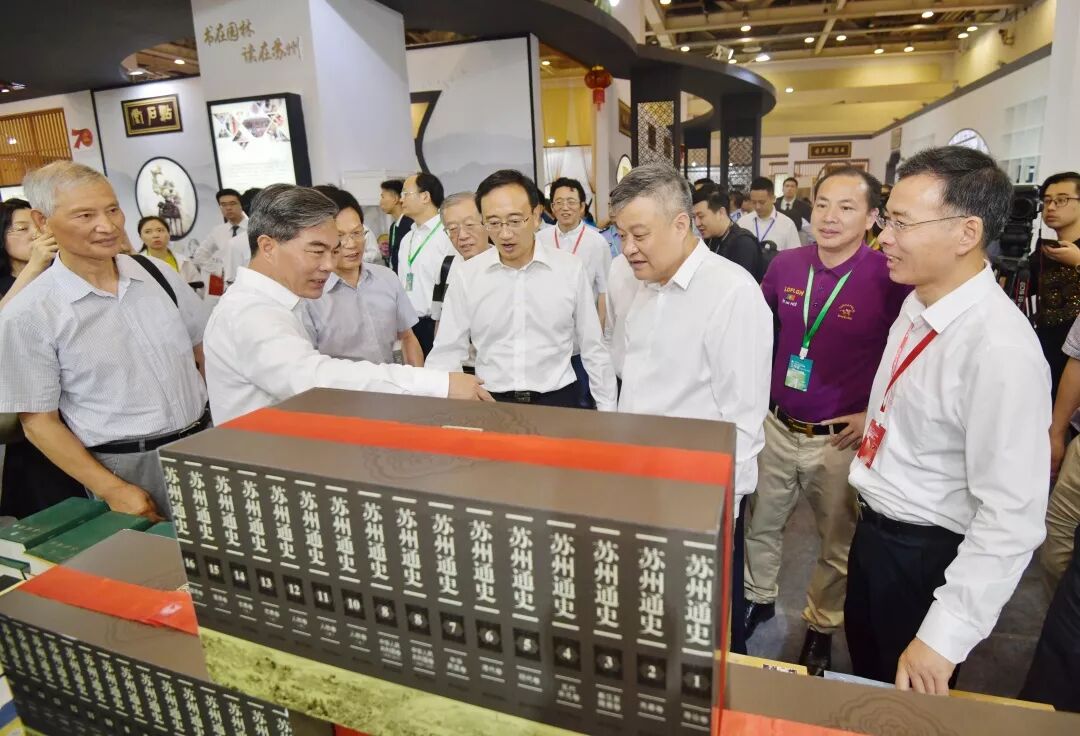 作为向新中国成立70周年献礼的重要史学著作,长达16卷821万字的《苏州通史》也在书展开幕式上举行了首发式。苏州市人民政府副市长王飏,市政府办公室副主任朱江,市委宣传部副部长、新闻出版局局长黄锡明,市社科联主席刘伯高向苏州市档案馆、苏州市方志馆、苏州图书馆及苏州大学图书馆负责人赠送了图书。