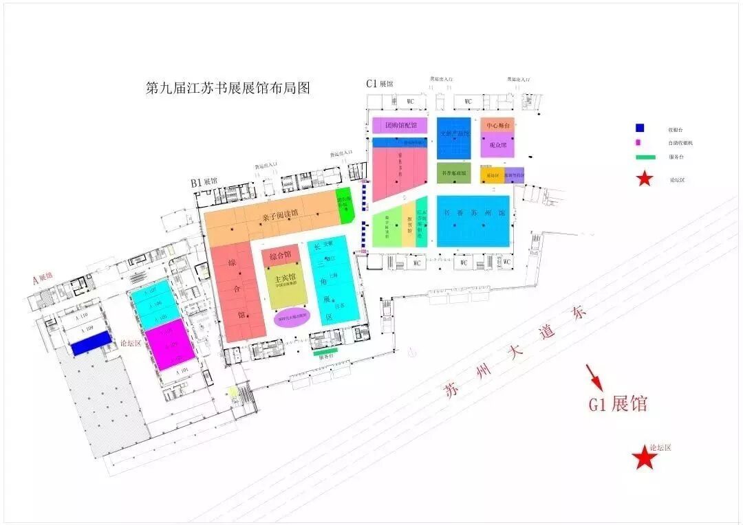 书展主展场,设置新时代主题出版馆、中国出版集团主宾馆、长三角展区、书香苏州馆、综合馆、特色书店、亲子阅读馆、港台海外馆、文创产品馆、报刊馆、数字阅读馆、江苏原创绘本馆、书香邮政馆、团购馆配馆等14个馆区。