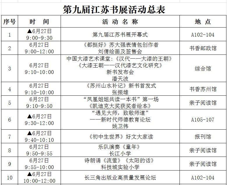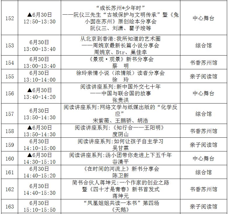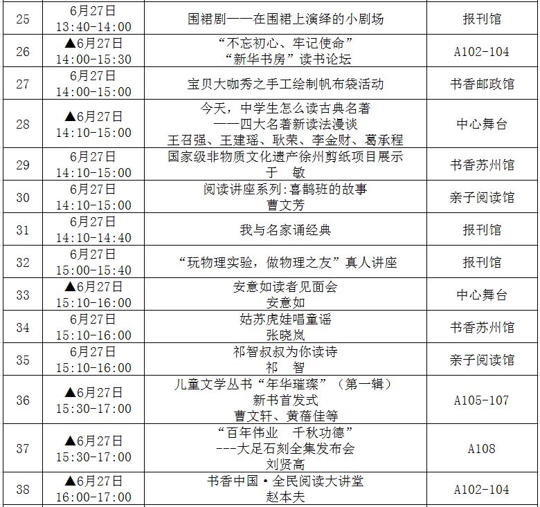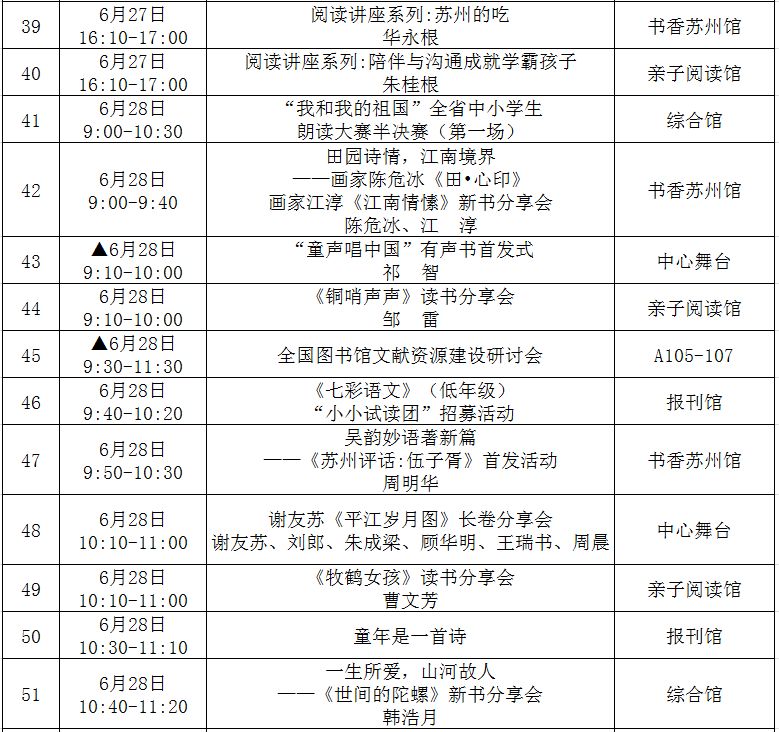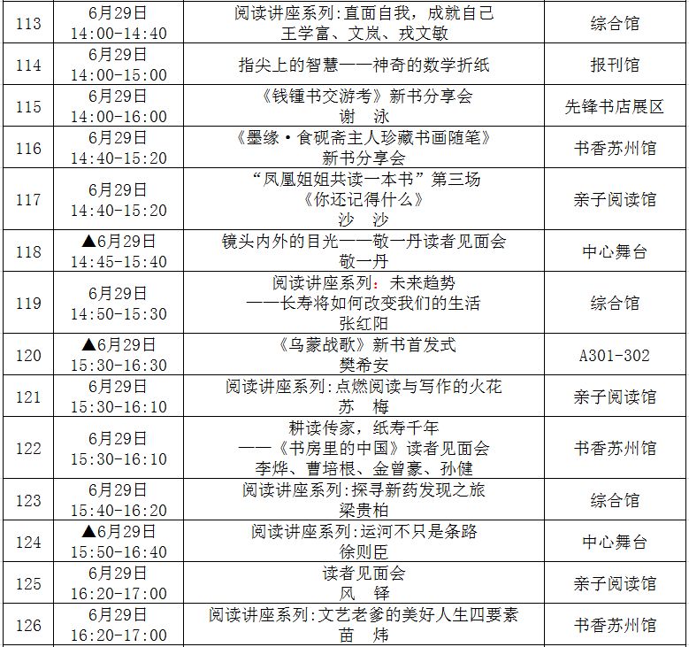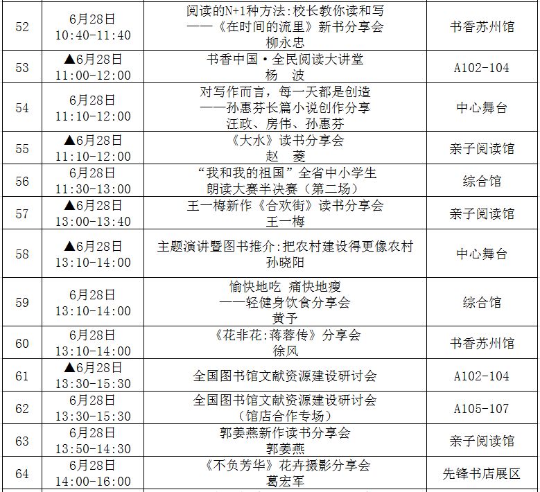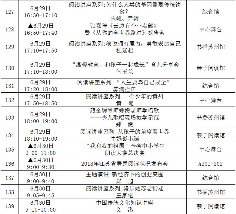 (带▲标为重点阅读推广活动,此表仅供参考,活动以现场组织为准!)