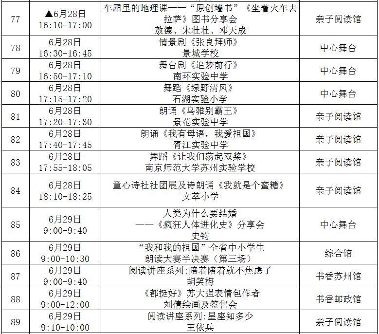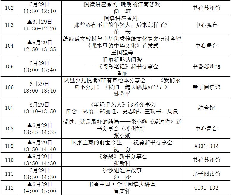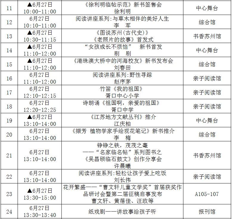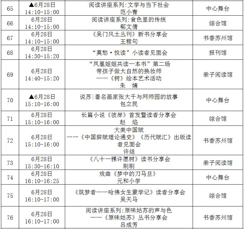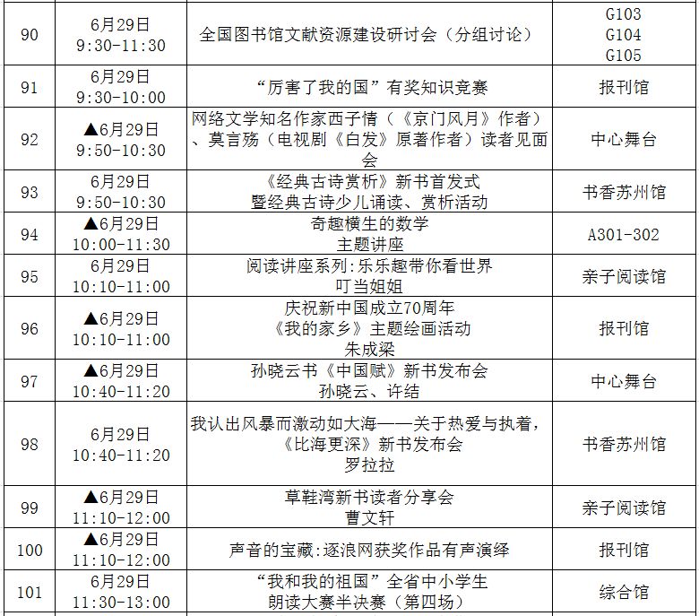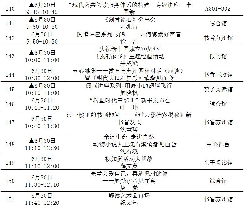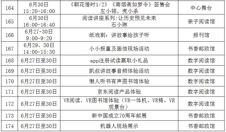 (带▲标为重点阅读推广活动,此表仅供参考,活动以现场组织为准!)