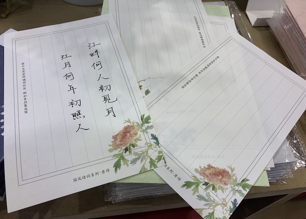 先锋书店文创全部升级,现场八折优惠。比如这个古诗信笺,售价38元,很适合当伴手礼。