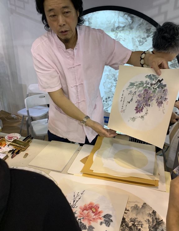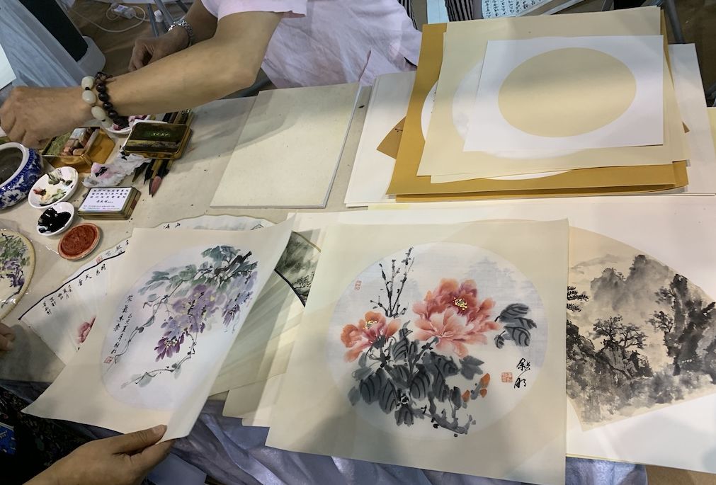 如果你需要扇面的话,画家也能满足你的需求,他们当场写作作画,然后进行装裱。扇面的价格在200-300元不等,而扇骨在50-500元之间,值不值就看个人喜好啦。