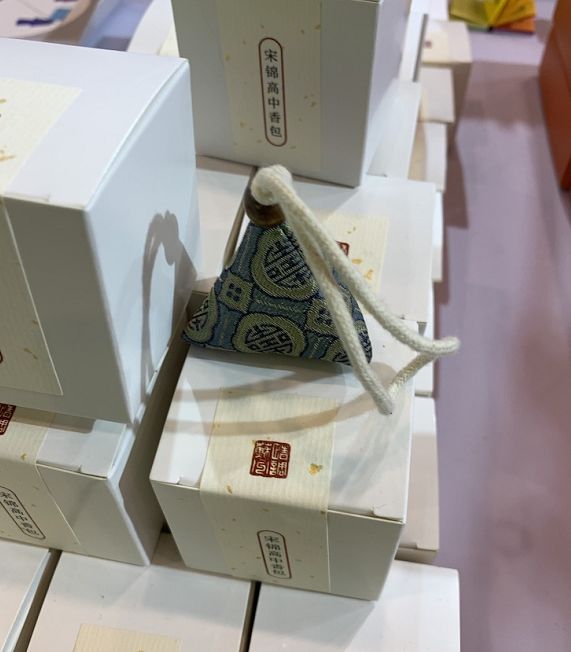 这里面还有一个让版话儿君心水的就是它的香囊,造型小巧,用了宋锦工艺,而且里面的香料可以避暑驱蚊,适合学生佩带。不过价格偏高,定价为58元。