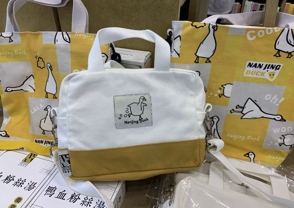 先锋书店的“南京鸭”系列,爆款是这两款包包,据说是南京地区的断货王,上架后秒没,打完折100元左右。