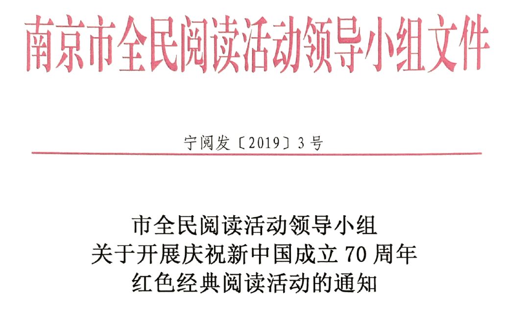 8月30日,南京市全民阅读活动领导小组印发通知,在全市范围内组织开展庆祝新中国成立70周年红色经典阅读活动。