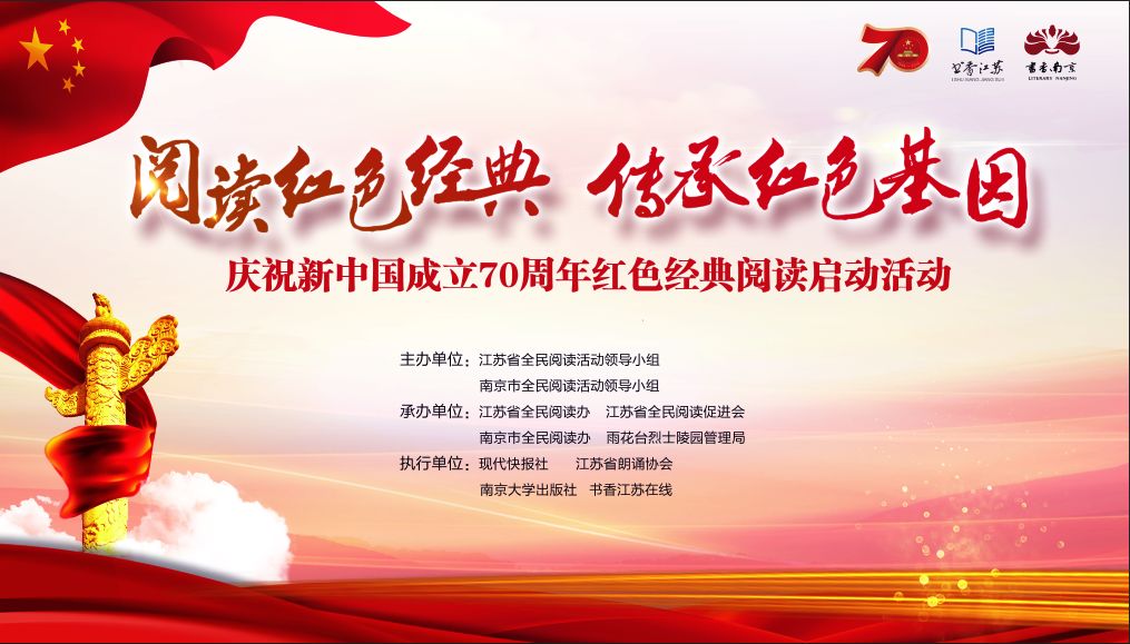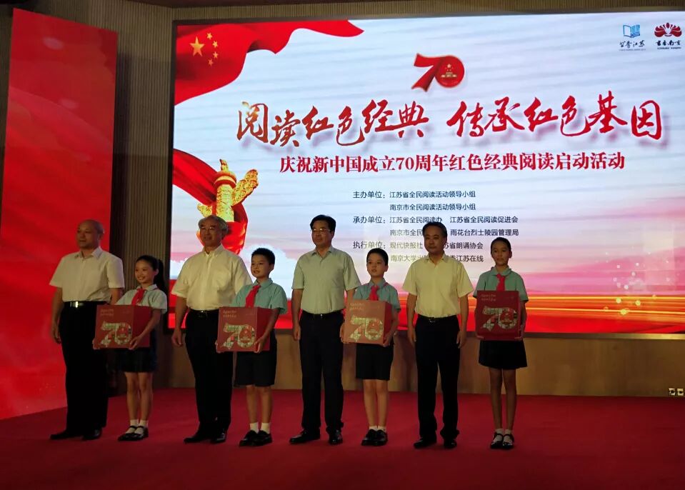 8月26日,以“阅读红色经典 传承红色基因”为主题的江苏省庆祝新中国成立70周年红色经典阅读活动,在南京雨花台烈士陵园启动。江苏省和南京市全民阅读活动领导小组成员单位负责人,省全民阅读促进会负责人,党员干部、大学生、共青团员、少先队员代表等150多人参加活动。