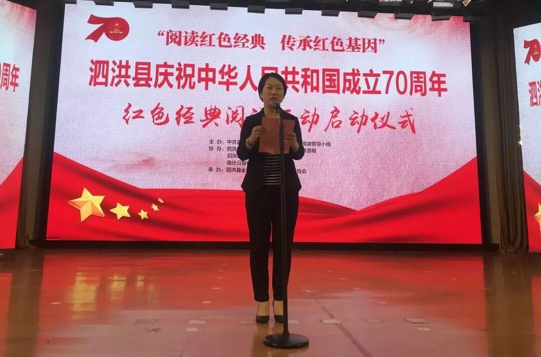 9月20日,泗洪县庆祝中华人民共和国成立70周年红色经典阅读活动启动仪式在县明德学校明德剧院举行。