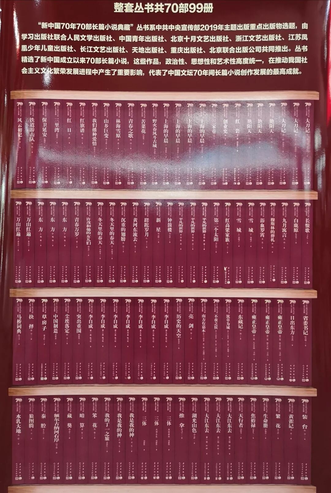 中华人民共和国成立70周年以来最伟大的长篇小说,当代最具影响力作家的70部优秀作品——“70年70部长篇小说典藏”丛书精装版,于9月23日在北京图书大厦隆重面世。