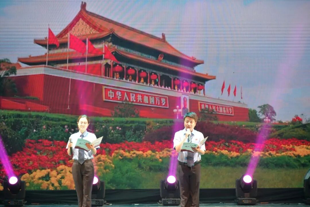 朗诵会以合唱《歌唱祖国》、朗诵《合唱》开篇,由“寻找初心”“沧桑巨变”“畅想未来”3个篇章组成,在全体人员高举五星红旗齐唱《我和我的祖国》的优美旋律中落下帷幕。