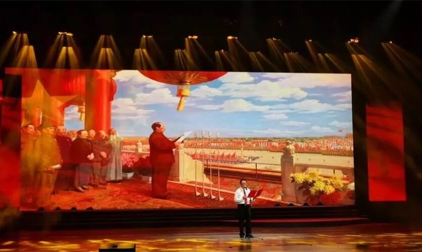 江苏教育频道与南京艺术学院影视学院共同合作演绎的“献给祖国的声音”经典诵读展示活动,从先期策划到成功演出,经历了半年多的时间,经过反复修改完善,从篇章的精心设计,内容的审慎选择,朗诵艺术家的盛情邀请,再到舞美设计、视频背景、主题音乐的呈现,可以说凝聚了主创人员辛勤的汗水。在不忘初心篇章选用我国老一辈播音艺术家、新中国广播事业奠基人之一的齐越教授的回忆文章《献给祖国的声音》,再现他1949年10月1日,向全世界现场直播开国大典的盛况。主题与内容的完美结合,将整场活动推向高潮。