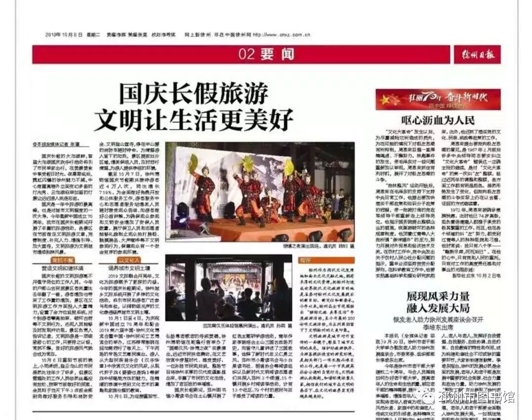 《徐州日报》对我馆国庆期间的活动进行了报道。