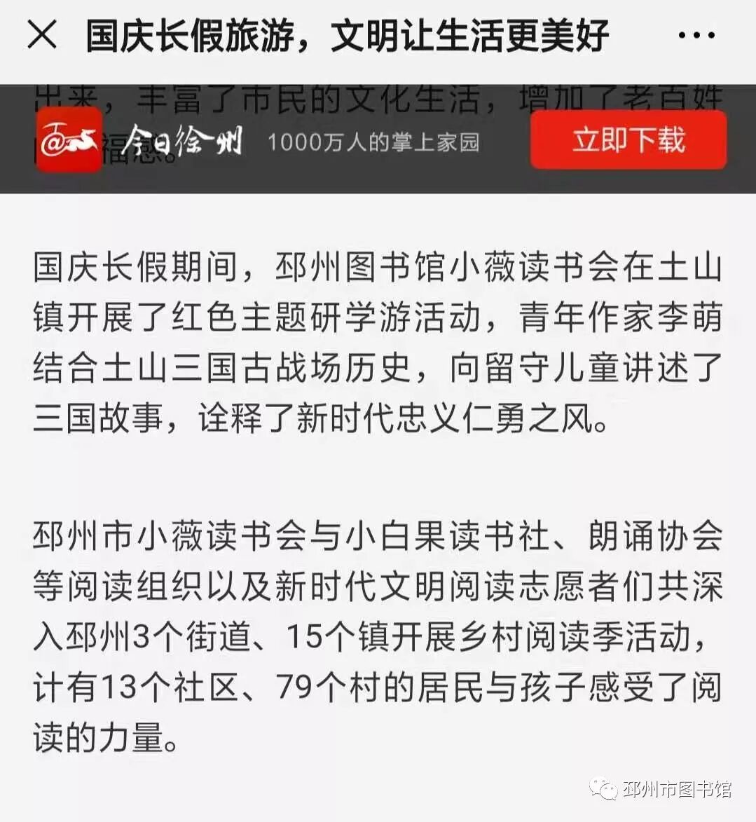 随后到该镇苏庄村开展阅读活动,一百余名中小学生积极参与,感受阅读的力量。这也是邳州市委宣传部所发起的“邳州市农家书屋主题阅读活动之红色阅读镇村行”活动之一。