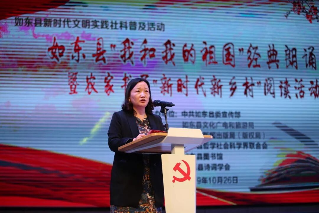 这次阅读活动既是全县文明实践•社科普及示范活动,也是庆祝新中国成立70周年系列活动之一。活动现场,阅读志愿者们准备了15个节目,既有寄托秋思乡情、回顾初心、讴歌新中国伟大成就的诗歌朗诵,也有回望历史、告白祖国的歌曲独唱。