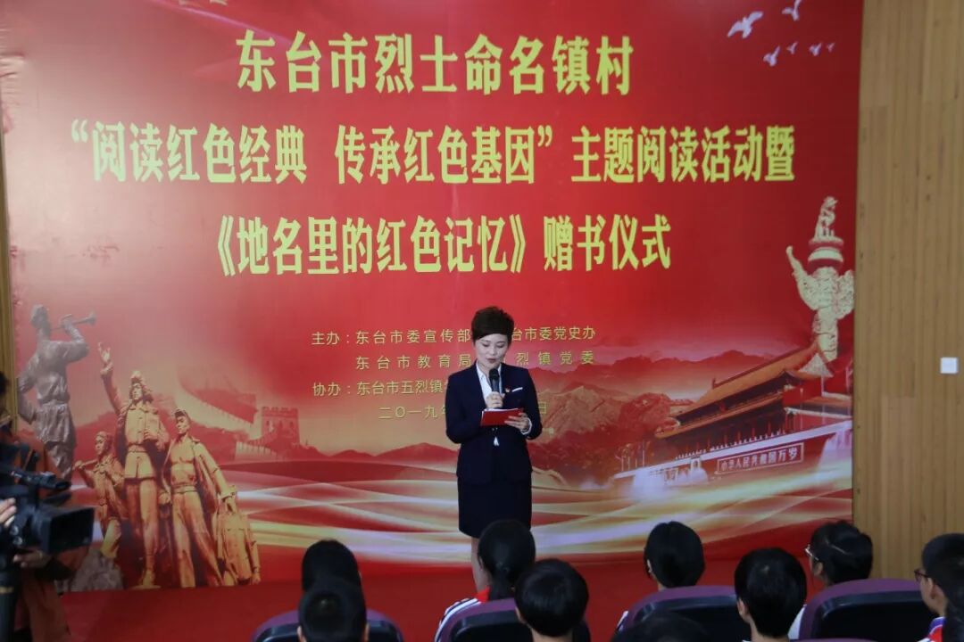 活动中举行了向烈士命名镇、中小学校赠送《地名里的红色记忆》的赠书仪式,该书辑录了东台市现有和曾经以烈士命名镇村的烈士事迹,是记载东台市红色印迹、红色历史的生动教材,已经并将持续有力助推广大干群、青少年学生铭记烈士事迹、传承红色基因,在新时代奋勇前行。