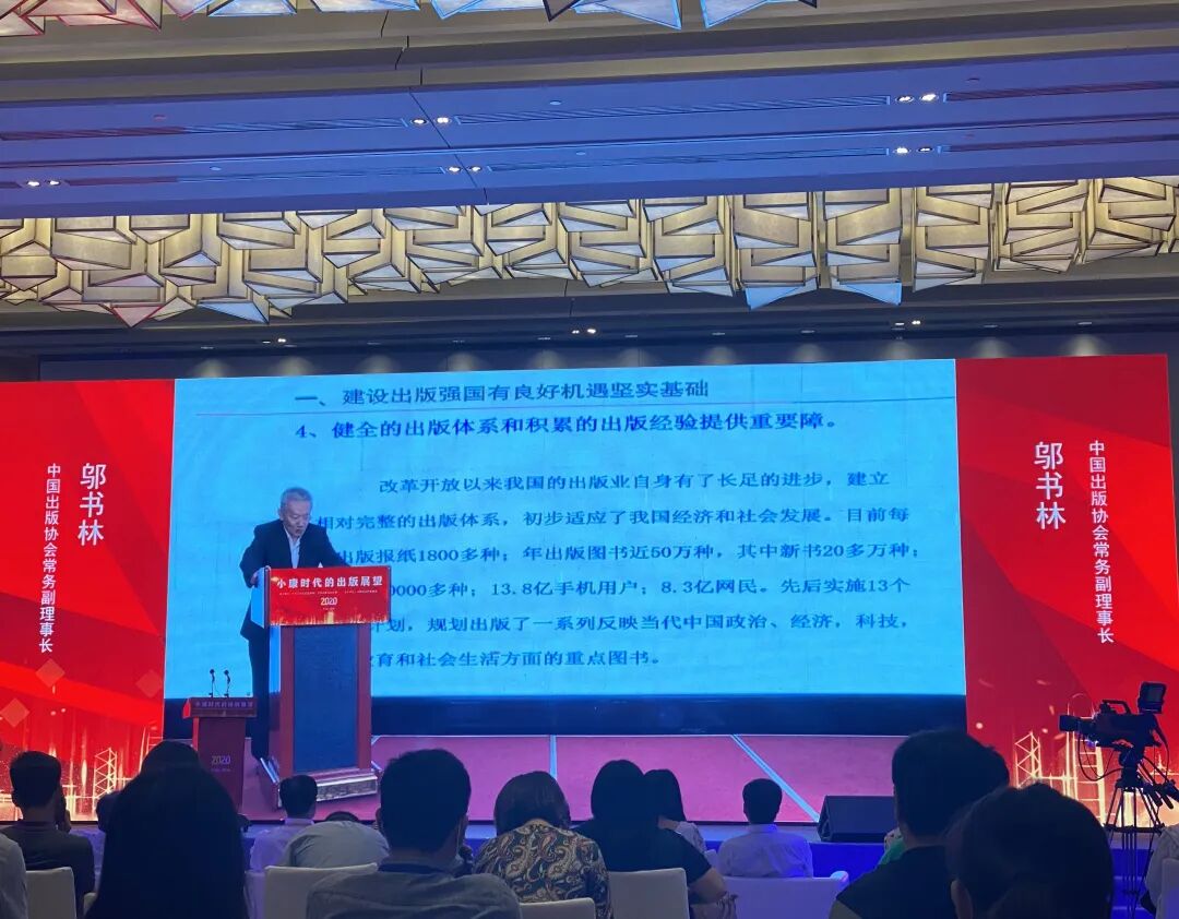 中国出版协会常务副理事长邬书林通过视频会议方式云参会,他的《全面建成小康社会与出版强国建设》主题发言提出要把我国出版业的发展放到全面建成小康社会的大背景下去考察研究。全面建成小康社会,不仅为出版强国的建设奠定了坚实的基础,提供了良好条件,还要求我们保持清醒的头脑,克服前进道路上可能遇到的困难和问题,更对中国出版业提出了全新的要求,建设出版强国,必须按照党和国家的大政方针的指引,要有一个高远的立意,紧紧围绕中国特色社会主义伟大实践,努力反映各方面的进展和成果,发挥好出版功能,在促进经济社会发展的同时,争取出版的更大繁荣发展。