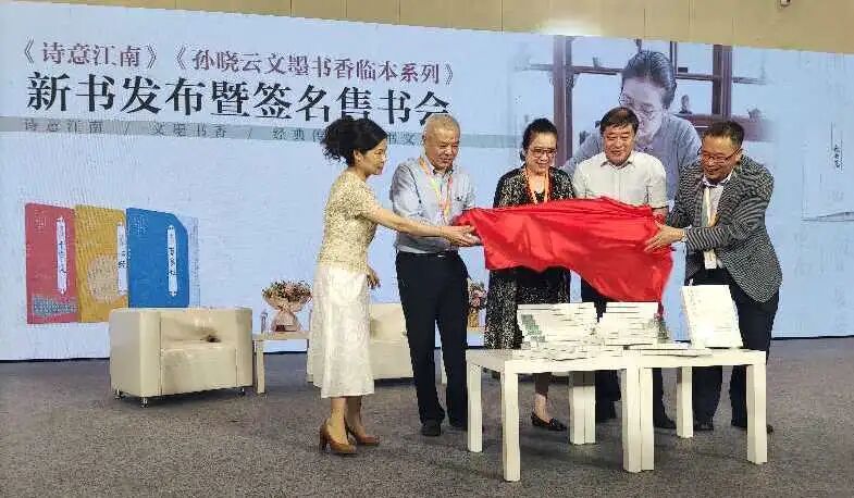 7月24日上午,中国书法家协会副主席、江苏省书法家协会主席、著名书法家孙晓云女士与南京大学著名教授许结先生为《诗意江南》等新书在第十届江苏书展现场举行发布会。