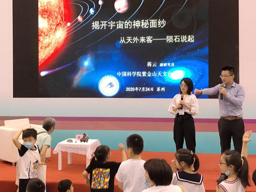 7月24日11:00-11:45在苏州江苏书展青少年阅读馆,中国科学院紫金山天文台副研究员蒋云带着她参与翻译的新书《BBC宇宙三部曲》(宇宙起源、宇宙之光、宇宙星尘),与大家分享了一场“揭开宇宙的神秘面纱,从天外来客——陨石说起”有趣的科普活动,吸引了众多读者和科普迷。