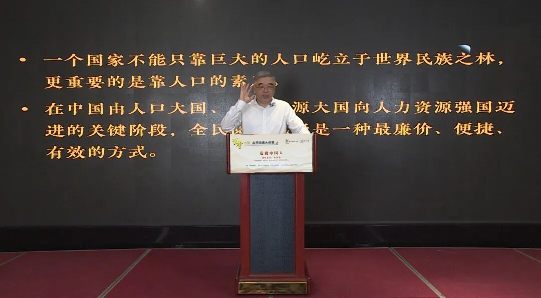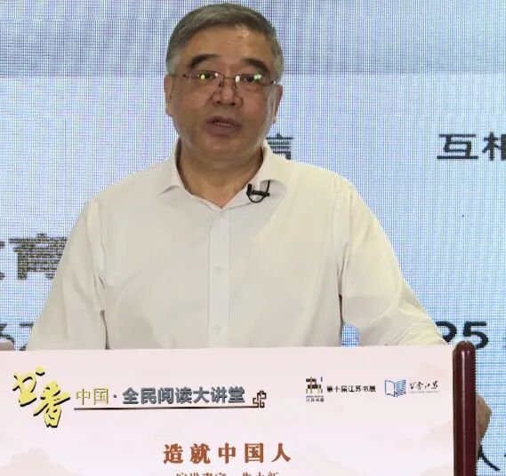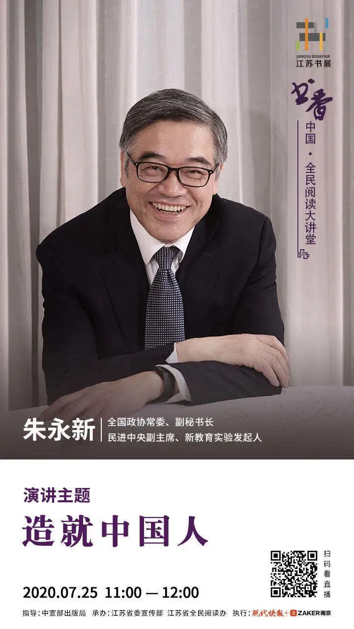 7月25日,“书香中国 · 全民阅读大讲堂”第三场线上开讲,全国政协常委、副秘书长,民进中央副主席朱永新在北京会场展开了题为“造就中国人”的演讲。
