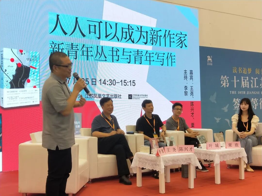 7月25日下午,“新青年”丛书的两位作者栗鹿、叶城,以及著名文学评论家王尧,苏州著名语文教师陈兴才相聚苏州,在第十届江苏书展综合馆就青年写作的话题展开了交流与讨论。