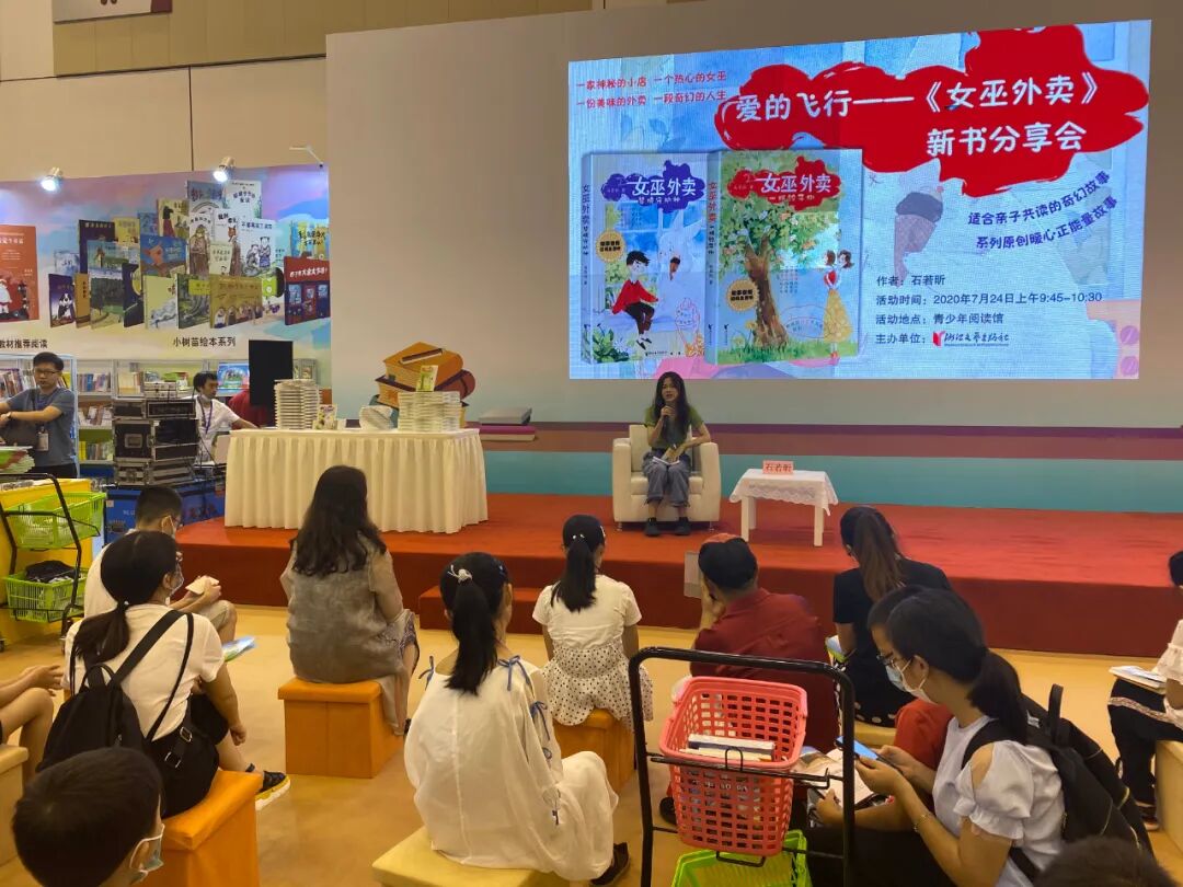 同一天上午9:45,95后新锐儿童文学作家石若昕带着她的新作——由浙江文艺出版社推出的“女巫外卖”系列的其中两部作品《女巫外卖·梦境守护神》和《女巫外卖·一棵饺子树》,来到了苏州国际博览中心的青少年阅读馆,与到场的家长和孩子分享新书的点滴。