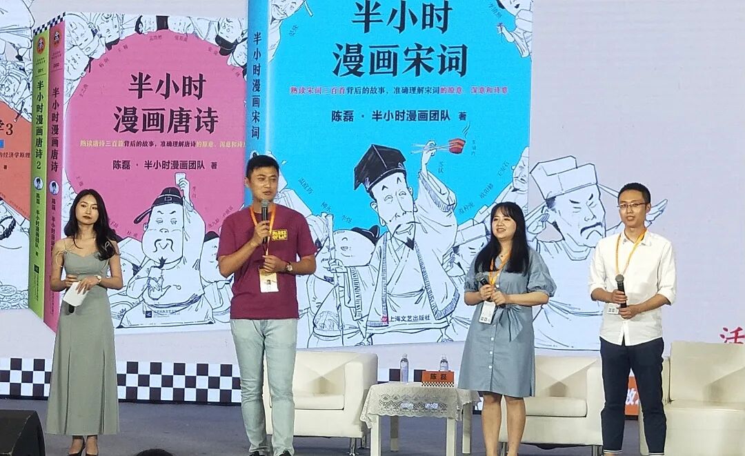 7月26日下午,知名历史漫画作家陈磊及他的团队携新作《半小时漫画宋词》在书展活动现场举办签售会,并与粉丝们畅聊他眼中的宋词和他喜欢的宋代文人。