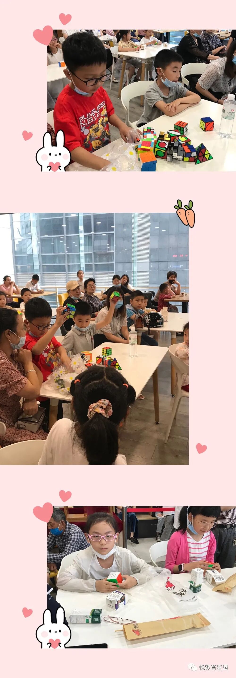 张栩宁老师不仅介绍了魔方的来历、各种分类以及玩法技巧,还现场教小朋友们学习了一阶、二阶魔方的玩法,如此好玩的魔方,让孩子们沉醉其中,室内听不到一点其他声音,只有是魔方转动的声音。孩子们是如此的认真、专注!