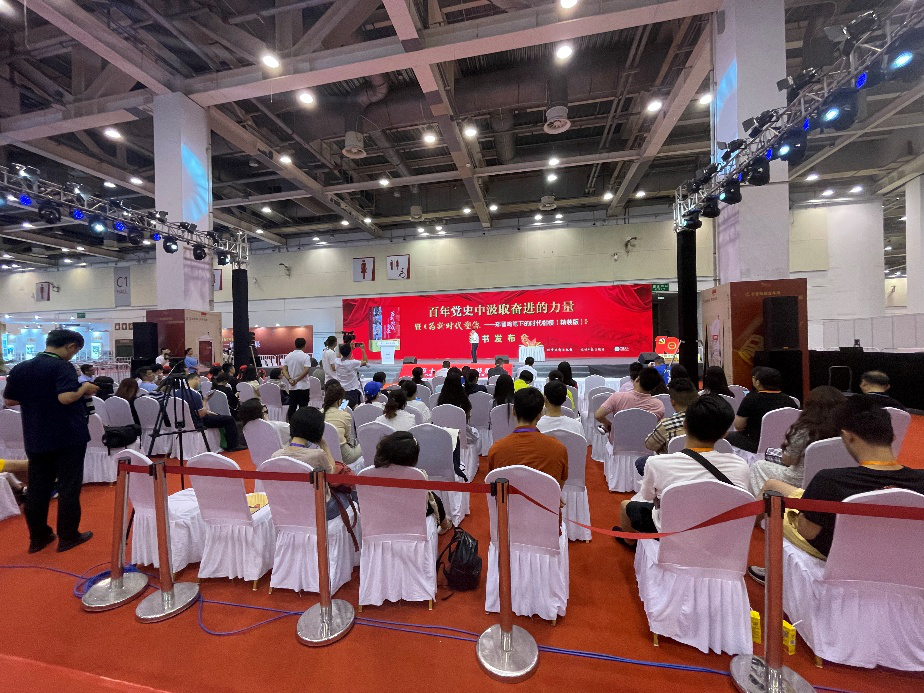 书展现场,采访何建明,他从文学的角度为讲述了文学创作在党史教育中所发挥的作用。