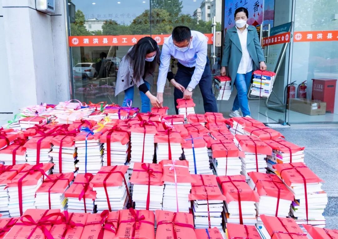 为更好的倡导全民阅读,营造阅读氛围,共建“书香泗洪”、“书香机关”、“书香企业”贡献工会力量。在4月23日世界读书日这天,县总工会机关党支部组织开展了“携手‘工’读、心有书香”暖心关爱“五个一”活动,“娘家人”党员服务队“兵分”十个小组,走访慰问产改企业和新业态就业劳动者,为每家送去红色书籍,让红色文化“看得见”“传得开”“记得住”,营造健康向上的良好文化氛围;同时为大家送上思政培训材料,通过“云视频”、“微宣讲”线上课堂开展“殷勇说产改、讲‘两会’、工会法培训”等授课内容,为广大职工送上丰富的“营养大餐”,引导职工坚定不移听党话、跟党走。长期以来,县总工会围绕“书香机关”建设,打造“工读书社”,丰富藏书数量、种类,为广大职工提供喝茶、歇脚、学习的空间,让职工阅读“触手可及”;“‘工’”读时光”,共度学习时刻,分享学习心得,在职工中组织开展各类读书活动20多场,积极营造“爱读书、会读书、读好书”的浓郁氛围。