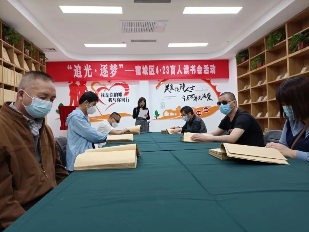 。。“追光·逐梦”活动是宿城区图书馆为盲人读者量身定制的阅读活动品牌,旨在让盲人朋友充分享受读书和求知的乐趣,感受阅读的魅力,丰富日常生活、丰盈精神世界。