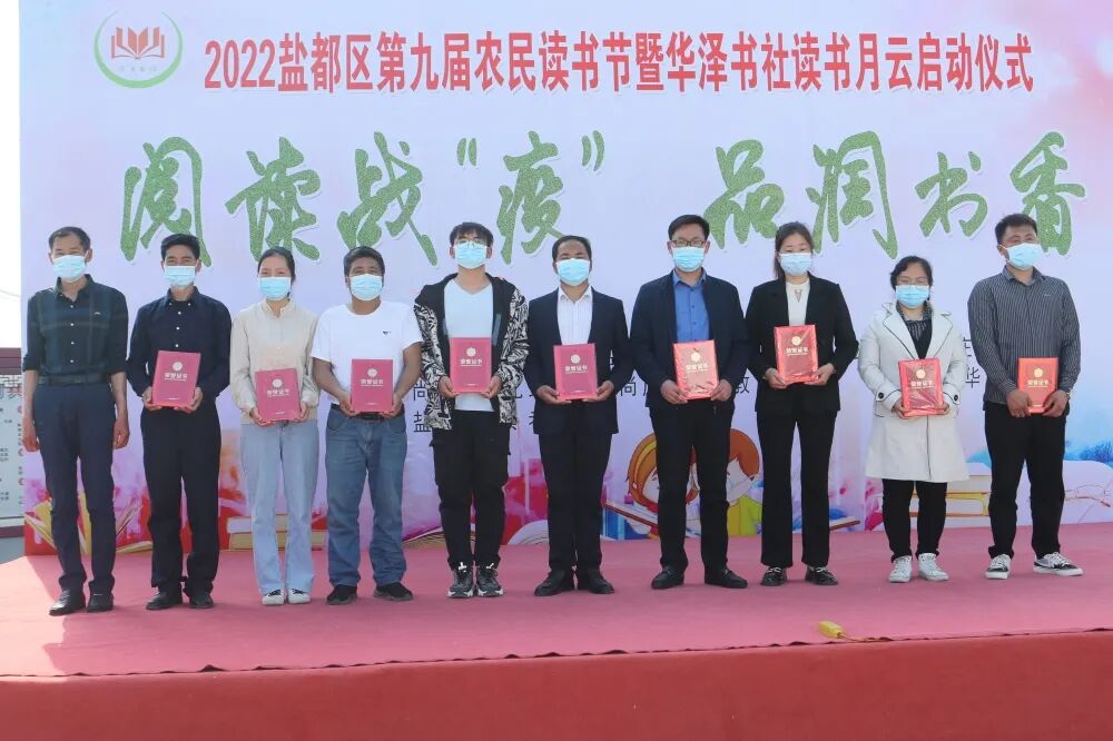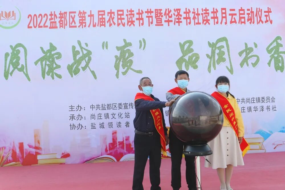 ▲番茄种植户代表、乡村振兴先进个人、阅读推广人共同按下启动球