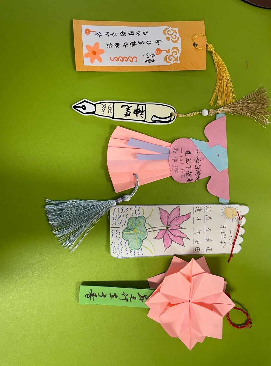 “书山有路勤为径,学海无涯苦作舟。”对于低年级的学生,学校开展了书签制作的阅读活动。孩子们把学到的文学名句写在自制的书签上,并融入了绘画创作,一个个雅致独特的书签在孩子们的手中诞生。