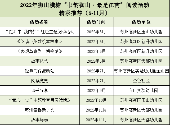 为推进书香江苏建设,引领全民阅读风尚,2022年高新区狮山横塘“书韵狮山·最是江南”阅读活动精彩上演,“桃李芳菲,阅读悦美”“绘"阅读、“绘"分享、“绘"创作、“悦享书香”“不负春光”“书声琅读书会”等88个系列阅读活动陆续展开。