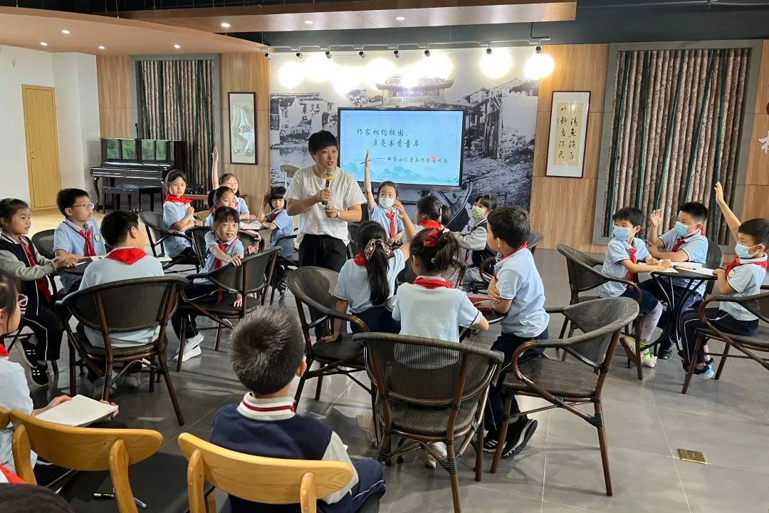 相较于低年级学生富有趣味性的阅读活动,高年级的学生则在阅读创作上有了更多的尝试。学校邀请了苏州市著名儿童文学作家周彩虹老师,与学生相约“聊聊吧”,在趣味问答中,一同创作了关于“纸兔子”的童话故事。