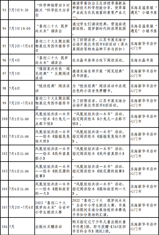 活动期间,全市各分展场将给出全年最低购书优惠政策,并将举办线上线下各类阅读推广活动 100 多场。小编现将购书优惠活动和阅读活动安排整理出来给大家。
