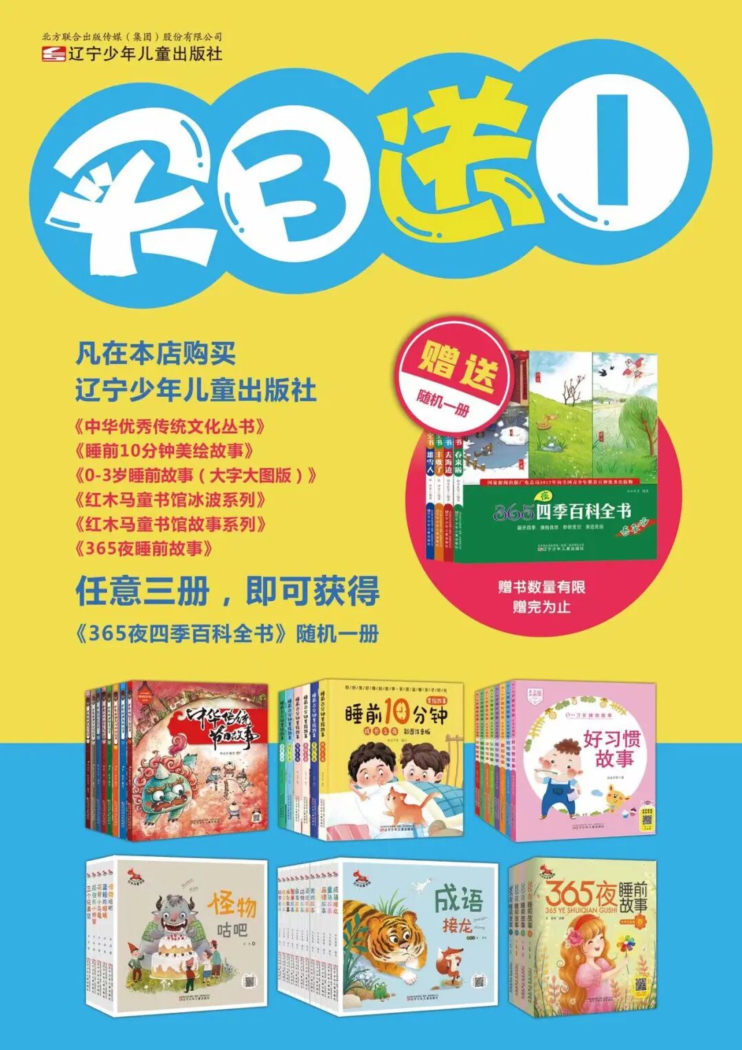 活动内容:凡到店购买辽宁少儿出版社系列指定图书任意3本,即可免费赠送《365夜四季百科全书》1本。赠品有限,送完即止。
