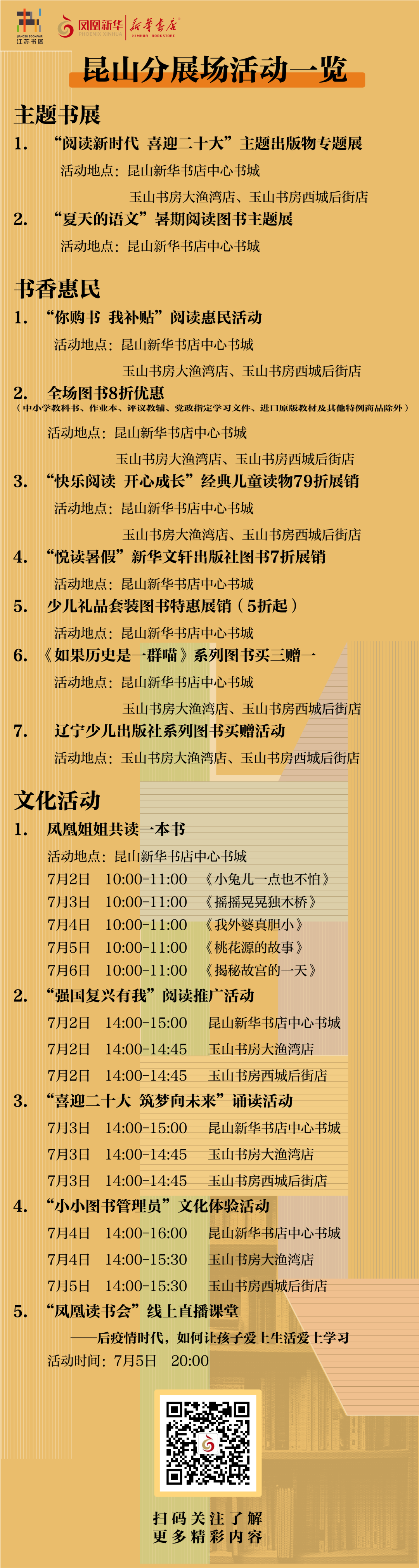 活动地点:昆山新华书店中心书城、玉山书房大渔湾店、玉山书房西城后街店