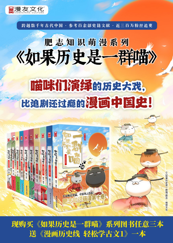 活动内容:凡到店购买《如果历史是一群喵》系列图书任意3本,即可免费赠送《漫画历史线 轻松学古文1》1本。