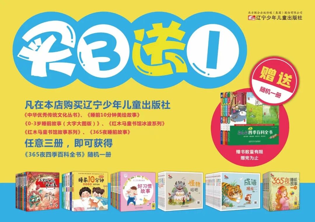 即日起凡在本店购买辽宁少年儿童出版社任意三册,即可获得《365夜四季百科全书》随机一册,(赠品有限,送完为止)。