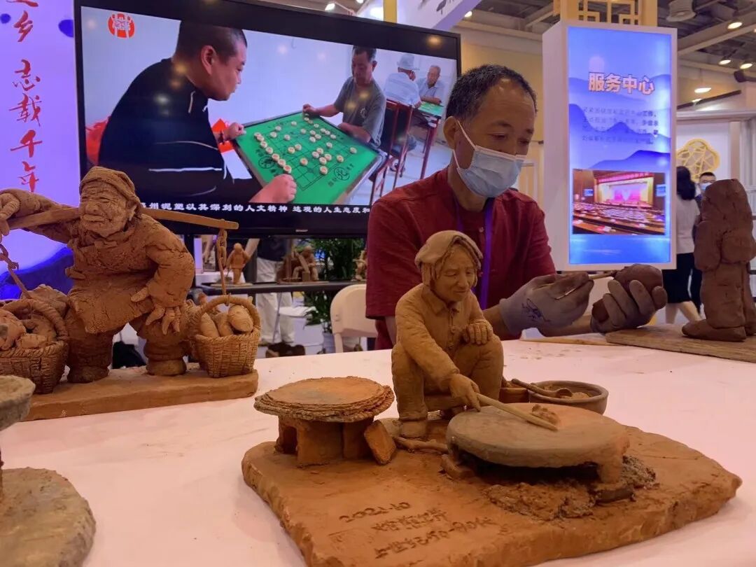 7月2日上午,苏州国际博览中心第十二届江苏书展“方志江苏馆”,来自徐州邳州市的非物质文化遗产传承人刘洪海正在进行现场制作表演,栩栩如生的返乡人员登记场景,惟妙惟肖的核酸检测场景,一组组抗疫题材泥塑作品吸引了诸多书友的目光。