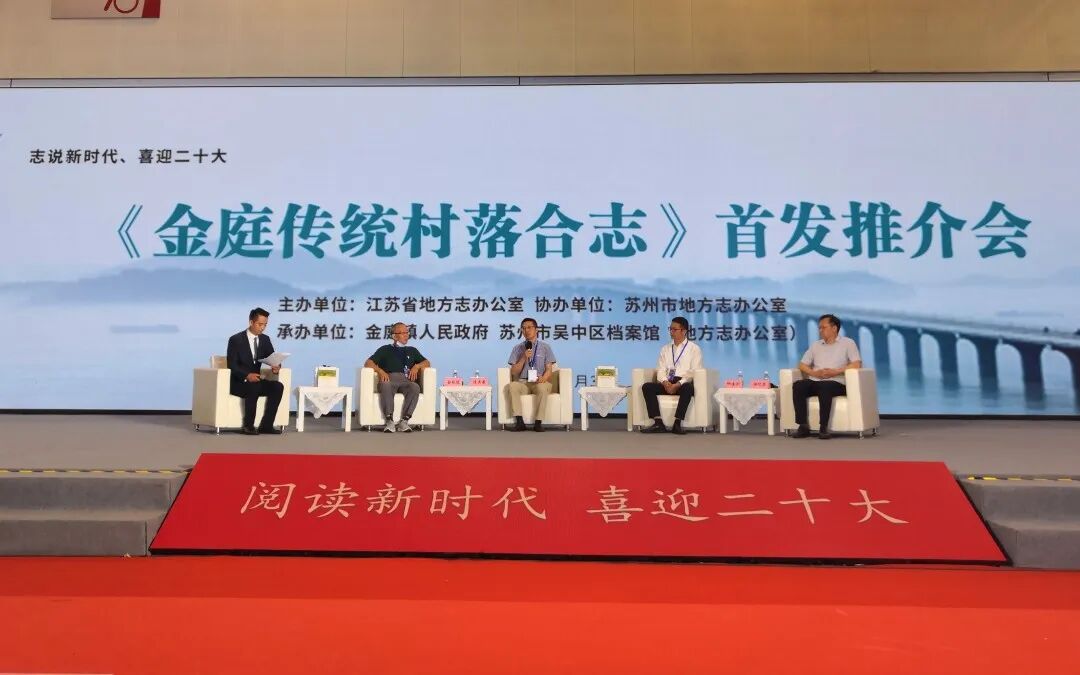 7月3日下午,由江苏省地方志办公室主办,苏州市地方志办公室协办,吴中区地方志办公室、金庭镇人民政府承办的《金庭传统村落合志》首发推介会在第十二届江苏书展中心舞台举行。志书主编、修志专家、金庭镇领导与现场书友分享了该志编纂经过、书籍定位、编纂体例、特色亮点、意义价值等,从不同维度宣传推介太湖生态岛——金庭镇的历史文化底蕴和独特的江南湖岛村落风貌。