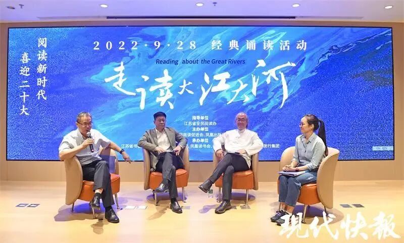 9 月 28 日上午," 阅读新时代 喜迎二十大 "2022 · 9 · 28 经典诵读活动启动仪式在南京凤凰国际书城举办。江苏省全民阅读促进会会长韩松林、凤凰出版传媒集团总经理胡建斌、凤凰传媒总编辑徐海等领导出席启动仪式。