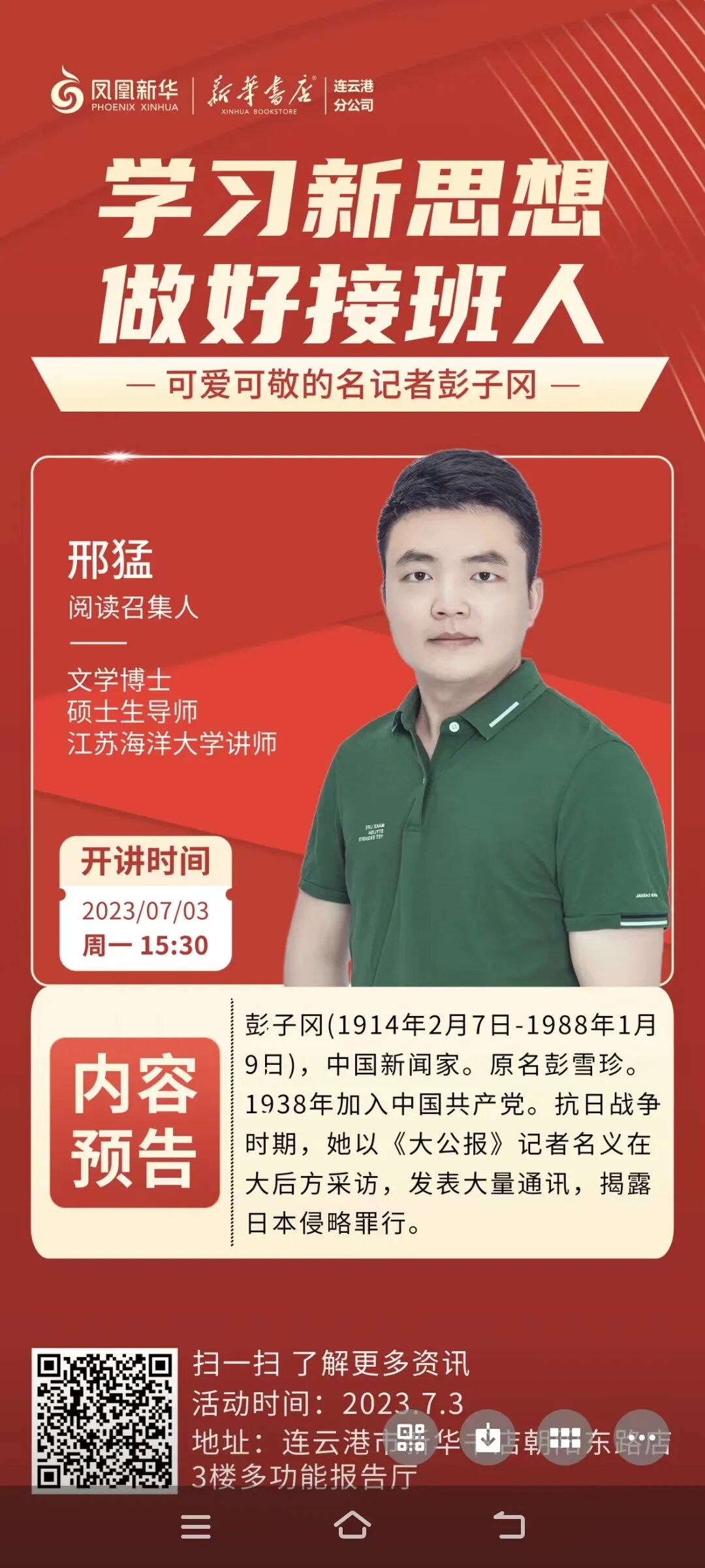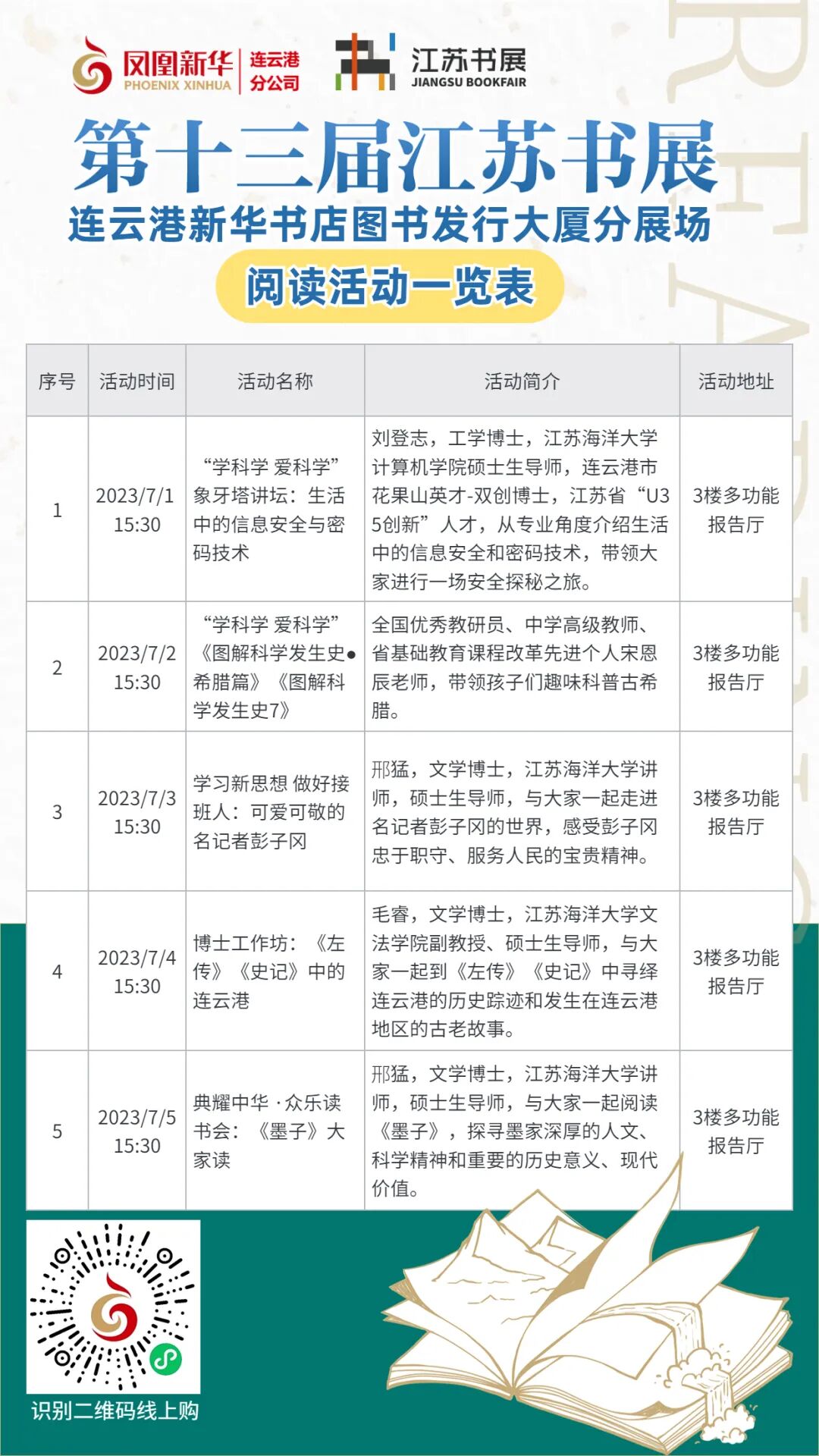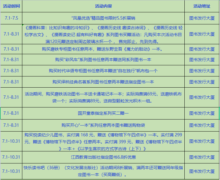 活动地点:朝阳东路27号图书发行大厦、通灌路新华书店、海州书坊