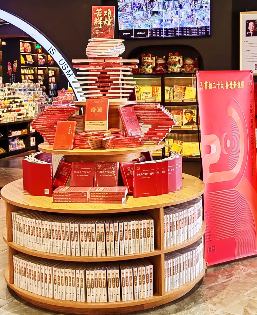 沭阳县印咸书局在店堂内设置“贯彻二十大 奋进新征程”主题展柜,集中展示重点主题出版物。