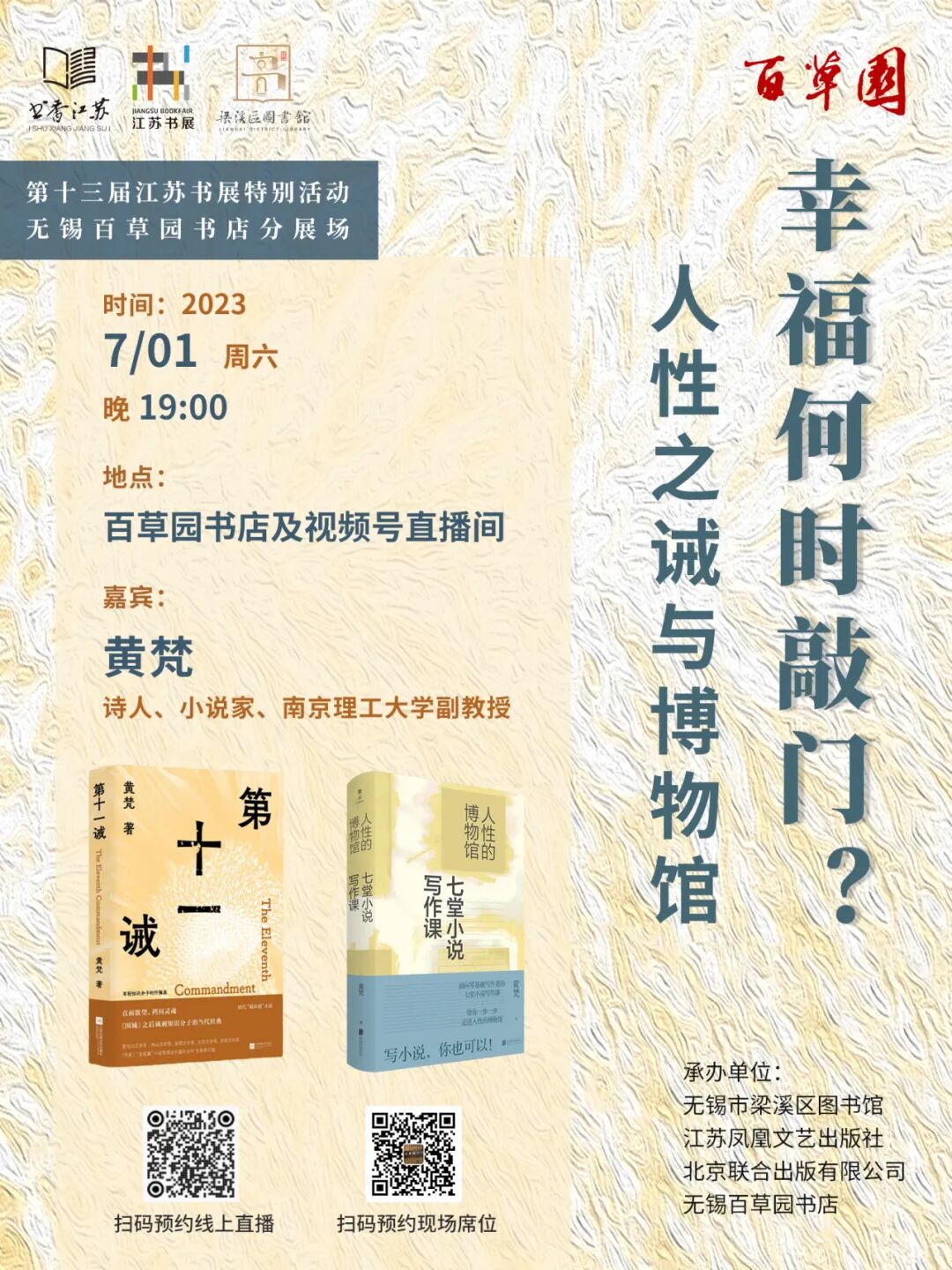 第十三届江苏书展将于7月1日至7月5日(本周六至下周三)在苏州国际博览中心主展场和全省165个实体书店分展场、2个线上分展场同步举办。凤凰文艺精心准备8场活动,用书香开启盛夏,邀您共赴这场文艺之约。