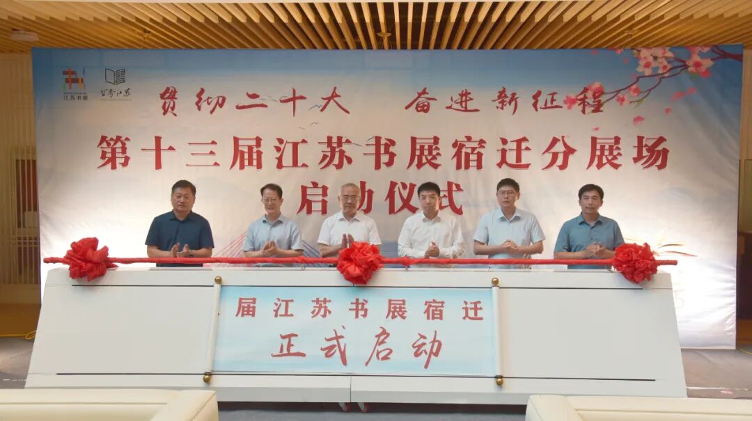 市委宣传部副部长、市社科联主席周长胜,泗阳县委常委、县委宣传部部长王卫安,市委教育工委委员、市中小学教学研究室主任王邦柱,团市委副书记亓俊先,市新华书店总经理、市全民阅读促进会会长刘虎和阅读推广人代表蒋学猛共同启动第十三届江苏书展宿迁分展。