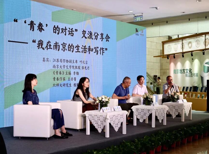 交流会由《青春》杂志主编李樯主持,著名作家叶兆言、教授张光芒、“青春人才计划”新锐作家王亦馨和北京师范大学研究生程舒颖莅临现场与读者面对面交流,大家围绕“我在南京的生活与写作”为题,分享了众多在南京的亲身经历与写作感悟。