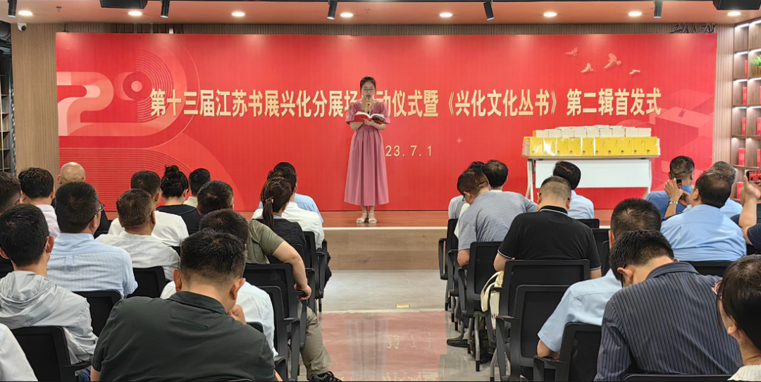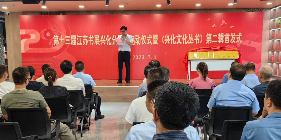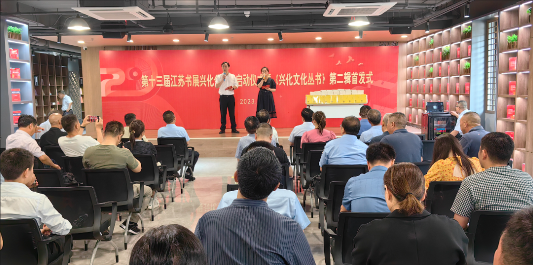 《兴化文化丛书》第二辑也在启动仪式上同步首发。在现场观众的掌声中由泰州市委宣传部出版和版权管理处处长陆小云、兴化市委宣传部副部长、市新闻出版局局长史道智共同揭彩。《兴化文化丛书》是兴化市委市政府“文脉整理与研究”工程的重要成果,是兴化文化的高度提炼与深度挖挖掘,对于了解兴化深厚的文化底蕴有着重要的意义。活动现场,《兴化文化丛书》第二辑的三位作者代表为观众推荐介绍。