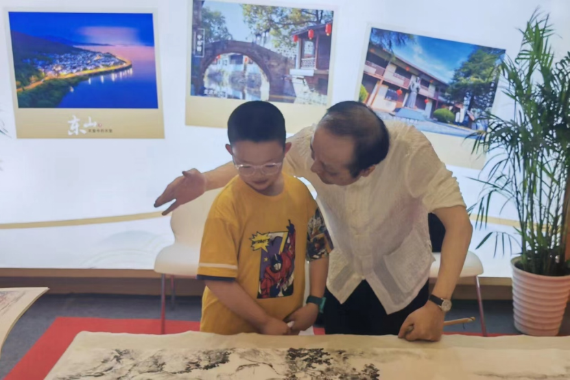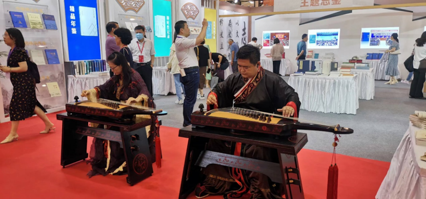 7月1日,书展开幕当天,在“方志江苏馆”北舞台区,来自无锡市档案史志馆的樊锡刚带来了经年累积的6幅精品,并现场创作了一幅山水佳作,古琴演奏家于湘莲以曲助兴。