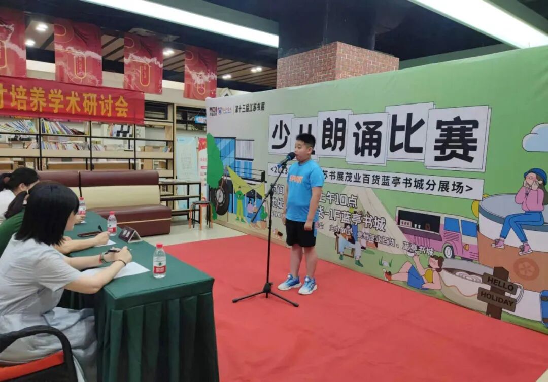 在泰州蓝亭书城,少儿朗诵比赛、周末读书会等活动吸引了读者参与。在下午举行的读书会上,刚刚荣获第三届汪曾祺散文大赛一等奖的我市作家曹文军分享了他在散文写作上的心得体会。活动中,大家一起阅读了名家经典散文作品,来自市作家协会、评论家协会、电影协会的会员们,对名著进行解读,发表自己的观点,读者们也一同参与讨论。
